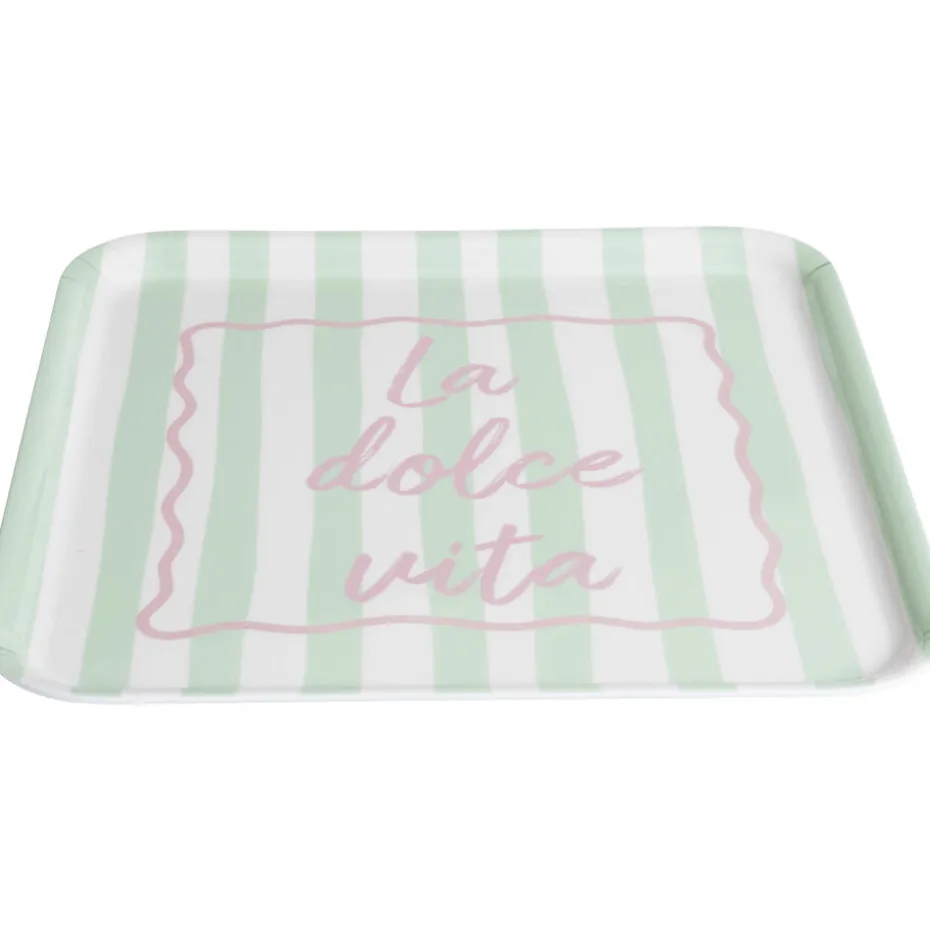 Breng stijl en functionaliteit samen met het vierkante dienblad La Dolce Vita in een elegante groene kleur. Gemaakt van duurzaam melamine is dit dienblad zowel lichtgewicht als stevig perfect voor dagelijks gebruik. Met een formaat van 33×33 cm biedt het voldoende ruimte voor hapjes drankjes of decoraties. Het sfeervolle ontwerp maakt dit dienblad een eyecatcher in iedere setting ideaal voor zowel binnen als buiten gebruik. Voeg een vleugje luxe toe aan je tafel!