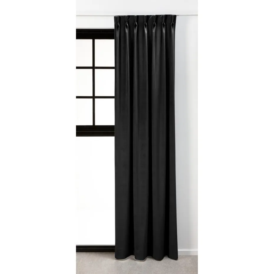 Gordijnstof gemaakt van glanzend zwart velours. Het zachte velours zorgt voor een stoere uitstraling. Stevig, vormvast en soepel. Dit velours gordijn is zeer geschikt om jouw huis te isoleren, vooral in de koude wintermaanden. Daarnaast heeft velours ook als functie dat de kamer waar je deze gordijnen ophangt, veel minder hol klinkt. Deze gordijnstof wordt warmer dan glas, zodat het binnen met gesloten gordijnen lekker behaaglijk aanvoelt. Hierdoor ontstaat er ook minder tocht. Door te kiezen voor een dikke stof (o.a. Sandra, Muck, Romeo, Benji, Jasmijn, Muck, Lou of Cloé), kan de verwarming mogelijk een graadje lager. Laat de verwarming vrij bij het hangen van gordijnen, dit zorgt ervoor dat de opstijgende warmte niet tussen het gordijn en het raam terecht komt. Het is handig als je gordijn op de vensterbank eindigt. Daarnaast kun je ook denken aan een combinatie tussen plisségordijnen en een overgordijn voor een extra isolerende werking. 145 cm breed.