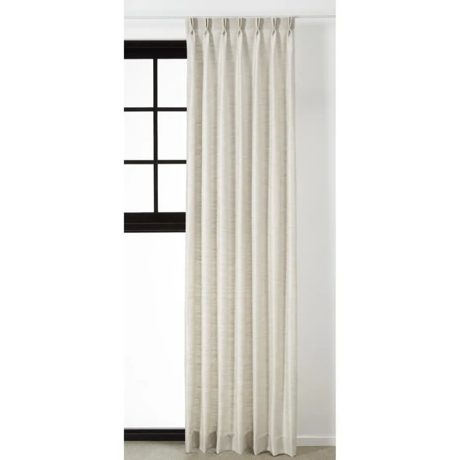 Soepelvallende zandkleurige gordijnstof. Vormvast en stevig. 138 cm breed.