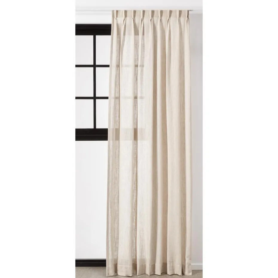 Inbetween Guus Naturel is een transparante gordijnstof van 40% viscose, 30% polyester en 30% linnen. Door de mix van materialen heeft Guus een soepel vallende, luchtige uitstraling. Gordijnen van natuurlijke materialen zijn prachtige sfeermakers in huis. Linnen is een natuurlijk materiaal dat bekend staat om zijn grove structuur. Iedere gordijnstof kent specifieke eigenschappen. Omdat linnen een natuurproduct is en uit natuurlijke vezels bestaat, gedraagt deze stof zich anders dan een polyester stof. Linnen heeft als bijzondere eigenschap dat het 20% van zijn eigen gewicht kan opnemen. Hierdoor kunnen de gordijnen iets korter of langer worden. Dit is afhankelijk van de vochtigheidsgraad in je huis. 300 cm hoog.
