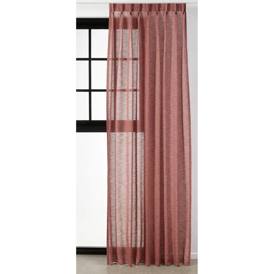 Inbetween Milou Rood is een transparante gordijnstof met een kleurmelange, gemaakt van 85% polyester en 15% linnen. Door de mix van materialen heeft Milou een natuurlijke uitstraling in een prachtige linnenlook. Wil je jouw huis meer sfeer geven met gordijnen maar wel je privacy behouden? Dat kan gemakkelijk met transparante gordijnen. Deze gordijnen bieden een ideale oplossing tegen inkijk bij ieder raam. Het filtert namelijk licht van buiten af, waardoor je nog wel naar buiten kunt kijken, maar het zicht naar binnen wordt beperkt. 300 cm hoog.