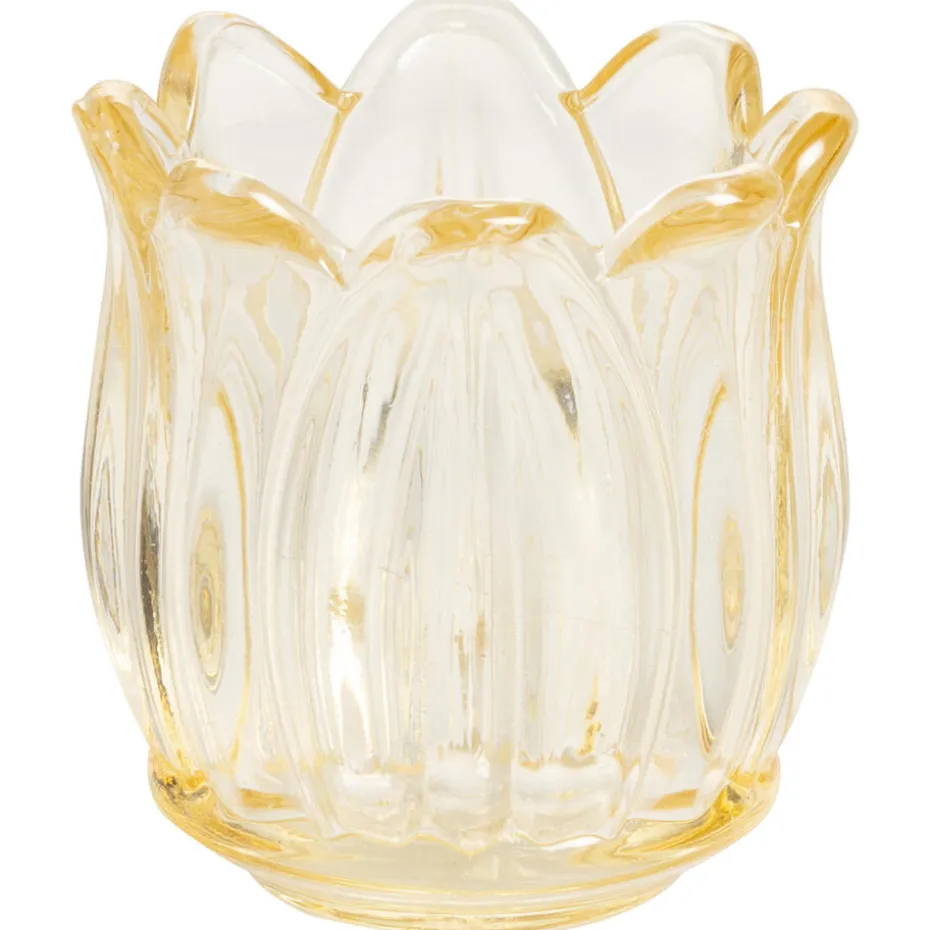 Breng een sfeervol en modern accent in huis met kandelaar Bloem! Deze glazen kandelaar in een zachte gele kleur is een echte blikvanger. Geschikt voor één kaars, perfect voor een warme sfeer. Ideaal voor de zomer en ook leuk voor buiten op je terras of balkon. Creëer een vrolijk en gezellig sfeertje, binnen én buiten!