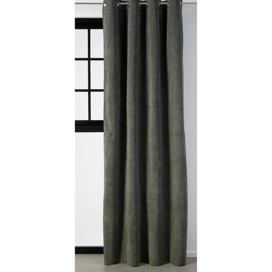 Verduisterend kant en klaar gordijn Laurens Groen heeft een grove geweven structuur aan de voorkant. De zachte voering aan de achterkant van dit gordijn werkt dubbel isolerend, zowel tegen de warmte als tegen de kou. Het gordijn is gemaakt van 100% polyester en heeft een chenille effect. Chenille geeft de gordijnstof een mooie glans en een zacht gevoel. Ideaal voor in de woon- of slaapkamer, een plek waar het overdag sfeervol en in de avond donker moet zijn in huis. Tevens heeft het gordijn een geluiddempende werking voor een aangename akoestiek. Het gordijn is kant en klaar en voorzien van ringen.