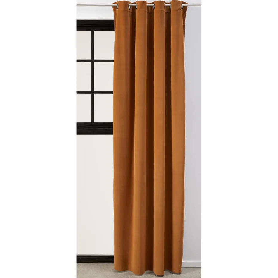 Kant en klaar gordijn Valerie is in de kleur camel en is gemaakt van 100% polyester. De stof eigenschappen zorgen ervoor dat de stof behoorlijk slijtvast is en makkelijk te onderhouden is.
