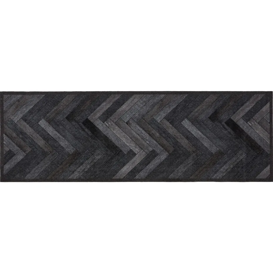 Keukenloper Roebuck is een keukenloper in antraciet kleur met een visgraat houtlook. Het geeft een eigentijdse en trendy aankleding aan je ruimte. Hij heeft een afmeting van 50×150 cm en is daardoor perfect te leggen in de keuken of in de hal. Door het materiaal is de keukenloper vocht-en vuilabsorberend en kan je hem gelijk reinigen in de wasmachine. De keukenloper heeft een rubberen rug wat zorgt voor een anti-slip werking. Je hoeft dus niet bang zijn dat je uitglijdt!