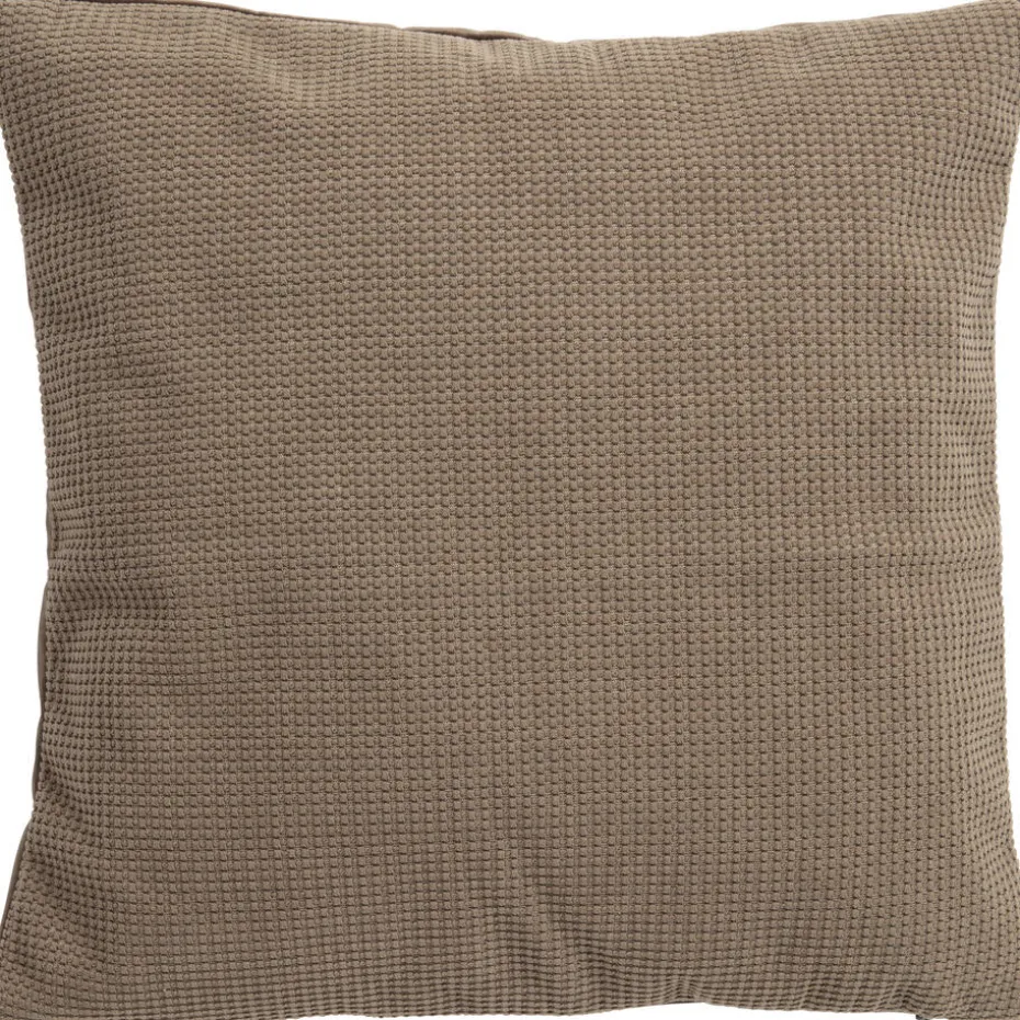 Sierkussen Derio is een echte eyecatcher binnen het interieur. Dit vierkante kussen van 45×45 cm in een moderne taupe kleur is gemaakt van 100% polyester. Deze sierkussen Derio met een patroon van horizontale en verticale geweven strepen staat ontzettend mooi in de woonkamer. Sfeervol maar ook heel erg knus.