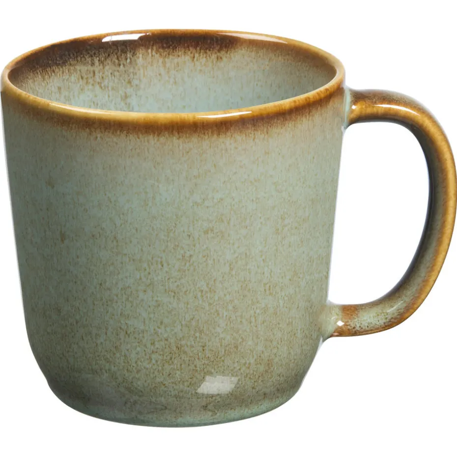 De Ava koffiemok in groen, met een inhoud van 280 ml, biedt een sfeervolle en moderne manier om van je koffie te genieten. Deze stijlvolle mok, voorzien van een comfortabel oor, is gemaakt van duurzaam aardewerk (stoneware) en afgewerkt met een elegante bruine rand. Het eigentijdse design maakt deze koffiemok met oor een perfecte aanvulling op elk servies. Ideaal voor dagelijks gebruik en een must-have voor elke koffieliefhebber.