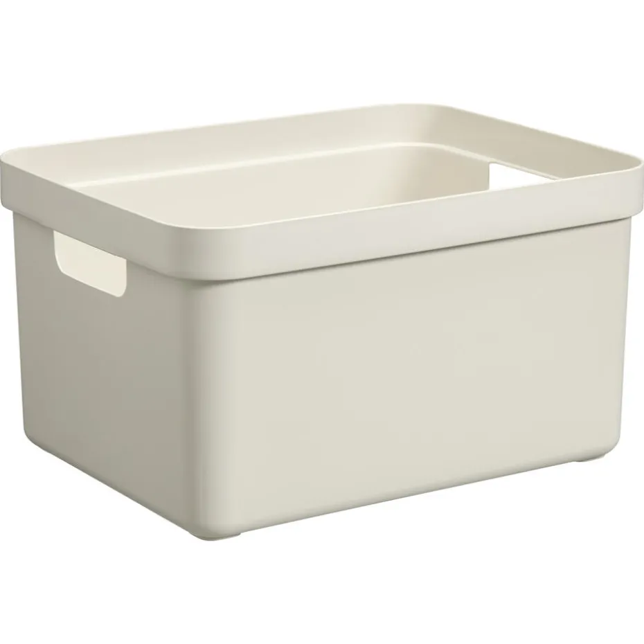 De veelzijdige beige Sigma opbergbox is een moderne toevoeging aan je interieur. Met een inhoud van 32 liter biedt deze rechthoekige box voldoende ruimte voor opslag in kinder-, speel- en woonkamers, evenals in de keuken. Voor extra gemak is de box voorzien van twee handvatten. Gemaakt van 100% gerecycled kunststof, combineert de Sigma opbergbox stijl met duurzaamheid. Optimaliseer jouw ruimte met deze functionele en trendy opbergoplossing.