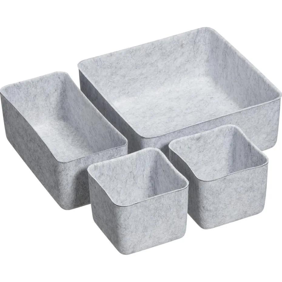Deze moderne opbergers, gemaakt van hoogwaardig vilt, biedt een slimme oplossing voor jouw spullen. Met 4 vakken zijn ze ideaal om je spullen netjes te organiseren. Deze lichtgrijze opbergers zijn een perfecte aanvulling op jouw interieur. Kies voor stijl en functionaliteit!