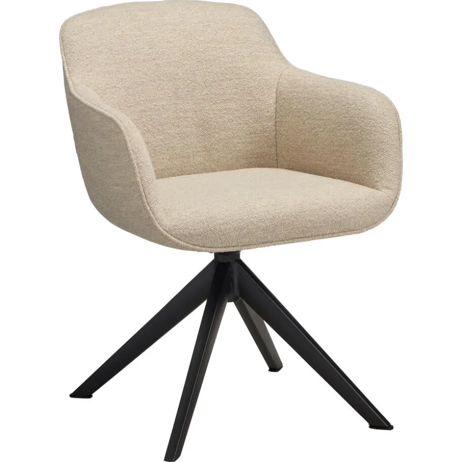Eetkamerstoel Comiso in de keur Zand is een echte eyecatcher. Stoel Comiso is gemaakt van een taupe bouclé stof en heeft zwarte metalen poten. Zet de stoel neer als fauteuil of aan je eettafel en geniet van de charmante uitstraling. Het leuk aan dit design is dat het volledig draaibaar is. Hierdoor is de stoel veelzijdig inzetbaar. Deze eettafelstoelen beschikken over een zithoogte van 48 cm met een maximaal draagvermogen van 110 kg. Je zit het fijnst als je een ruimte van 20 cm tussen de onderkant van het tafelblad en de stoel aanhoudt.