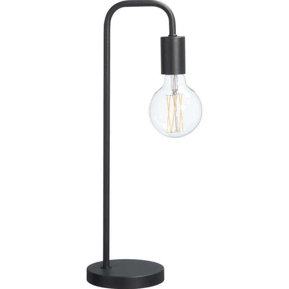 Trendy tafellamp met zwarte voet en zwarte arm. Grote fitting E27. 49 cm hoog.