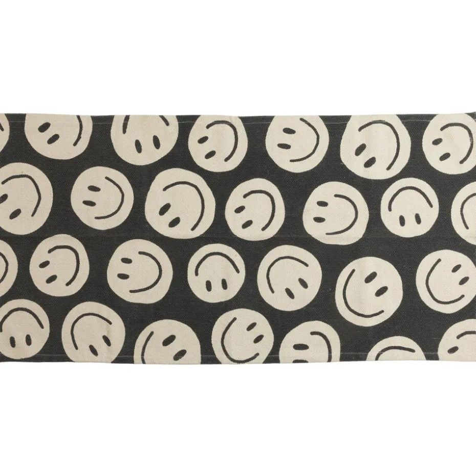- Rechthoekig, zwart vloerkleed met smiley patroon