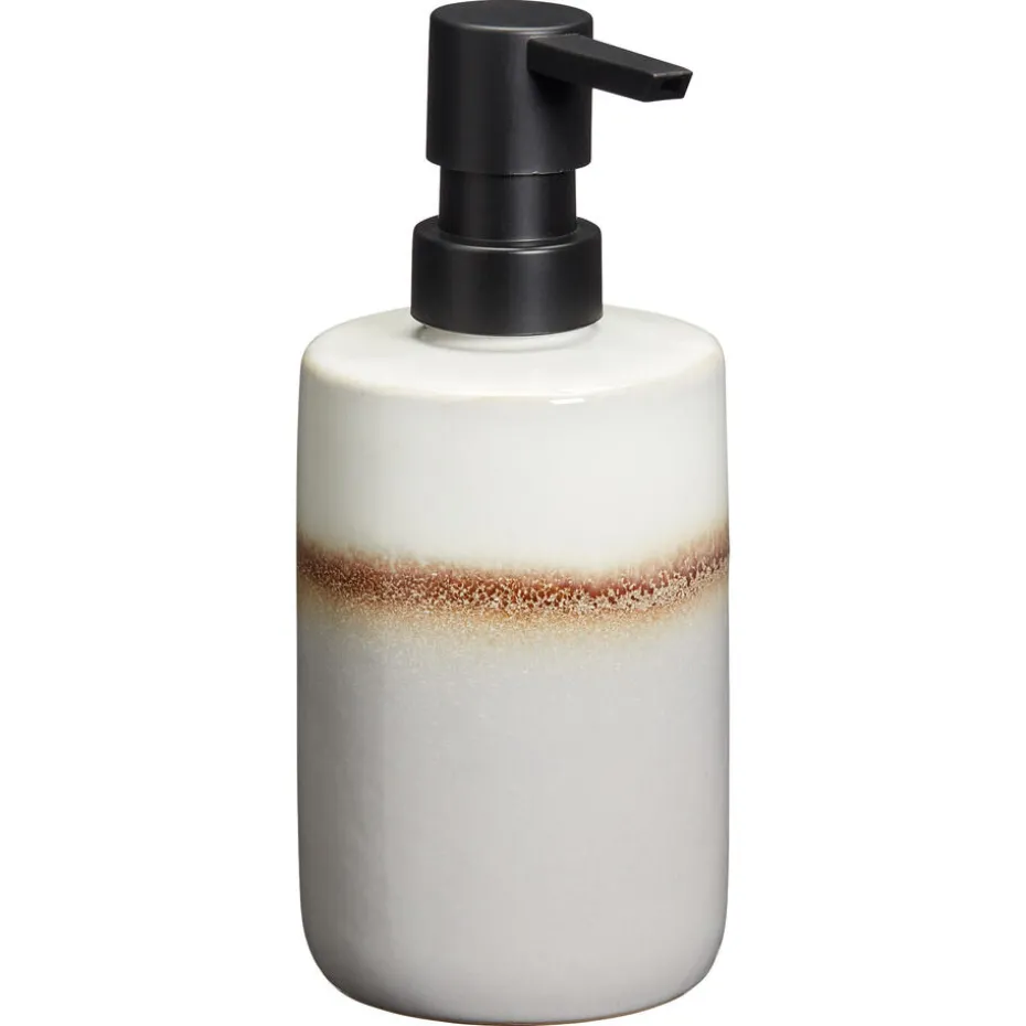 WGrijs/witte Sep zeeppomp. Gemaakt van stoneware. Hoogte 17 cm.