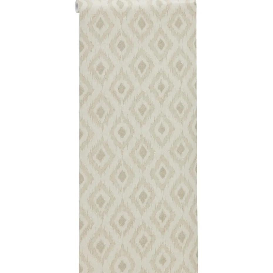 Vliesbehang Jolanda in een zand kleur met sfeervol ruit dessin. Goed afwasbaar. Voorzien van het FSC-keurmerk. Plakken met Perfax Pink. 10 meter per rol.