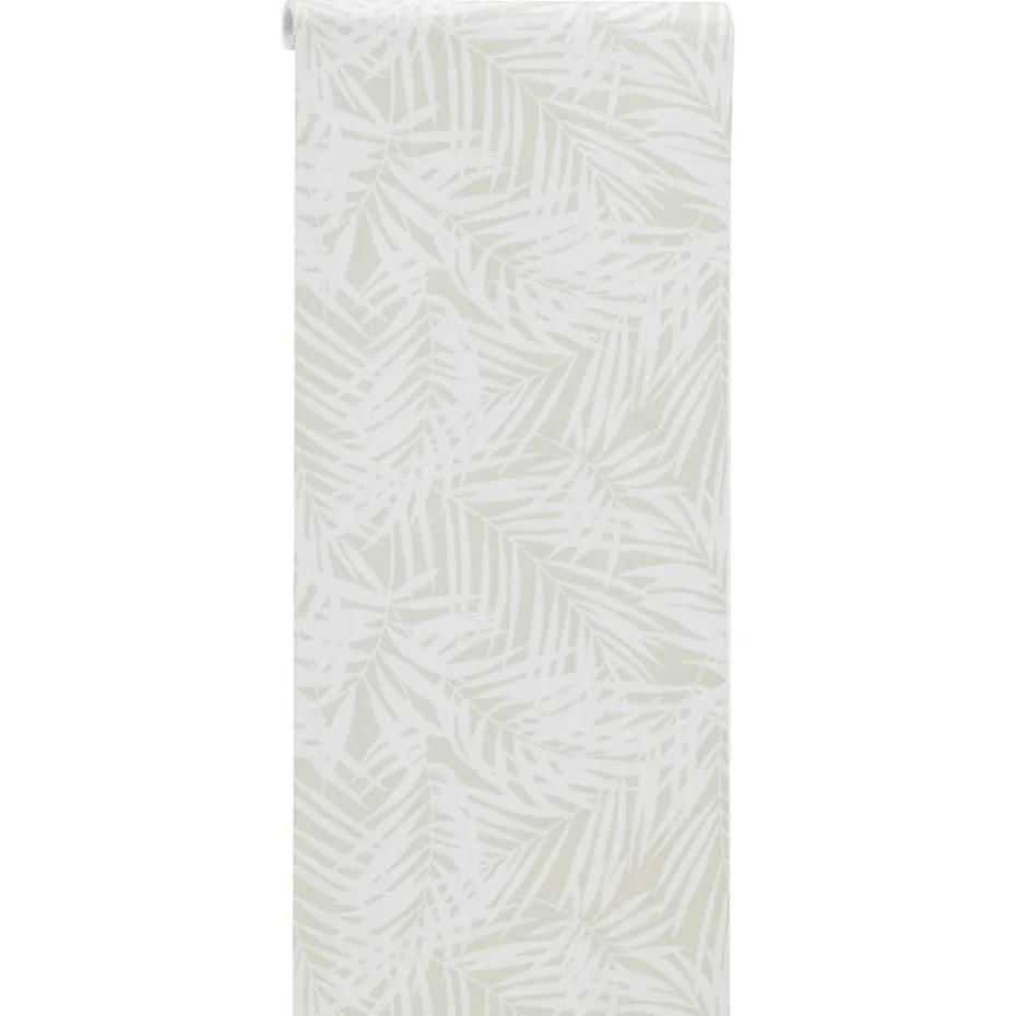 Vliesbehang Micha in sfeervolle zand kleur met bladeren patroon. Het behang is voorzien van het FSC-keurmerk. Plakken met Perfax Pink. 10 meter per rol.