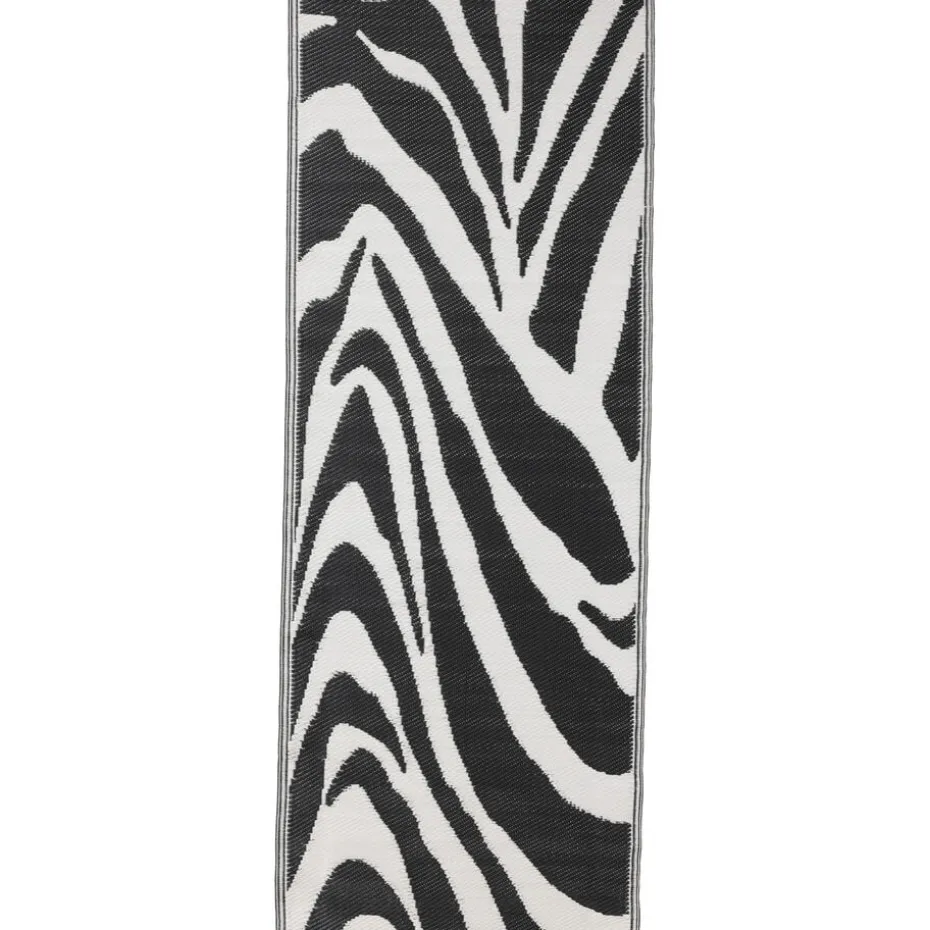 Buitenkleed Cowra is een zwart kleed die met het zebrapatroon je tuin, balkon of terras een gezellige sfeer geeft.
