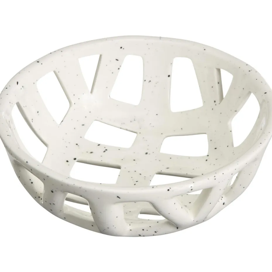 Deze prachtige Limes fruitschaal is een eyecatcher in elke keuken. Deze wit gespikkelde fruitschaal van hoogwaardig aardewerk (stoneware) is zowel stijlvol als functioneel. Perfect voor op de eettafel en in de keuken, het biedt een elegant display voor je fruit. Als veelzijdig keukenaccessoire voegt het klasse toe aan je interieur.