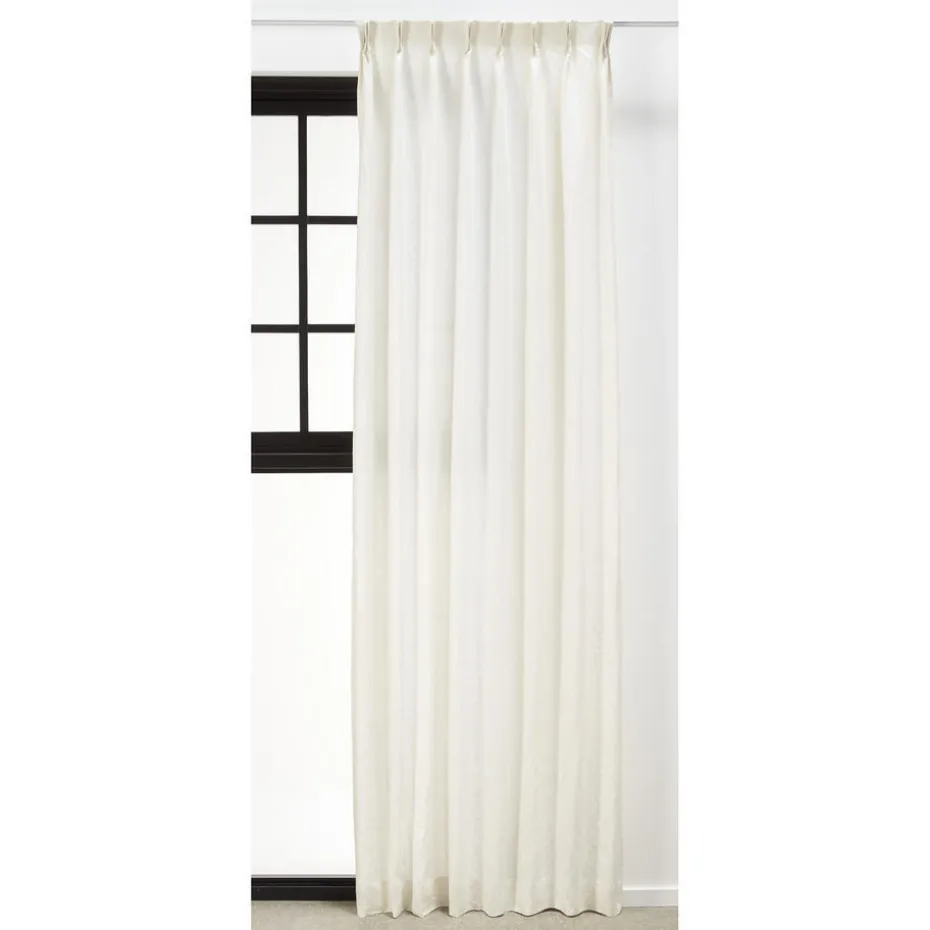 Gordijnstof van off-white linnen. Pluisvrij, luchtig en sterk. 140 cm breed.