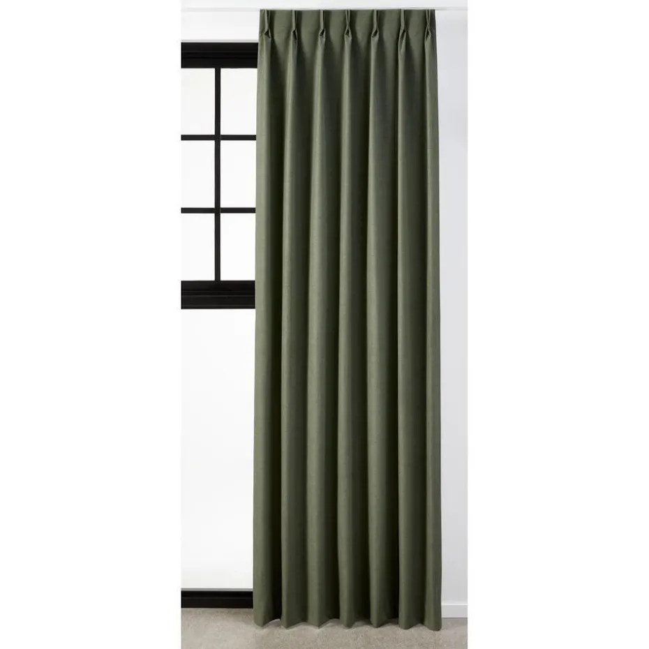 Verduisterende gordijnstof Doris in de kleur donkergroen met een elegante uitstraling. Stevig, vormvast en slijtvast. Dit black-out gordijn is aan de achterkant voorzien van een coating die ervoor zorgt dat dit gordijn 100% verduisterend is. Deze coating zorgt dat er geen licht door de stof komt. Daarom is de achterkant meestal wit en de voorkant is de gewone gordijnstof. Een black-out gordijn voelt wat stugger aan. Deze gordijnstof houdt, in tegenstelling tot dim-outs 100% het zonlicht tegen. Bij de confectie van deze kwaliteit kunnen kleine gaatjes ontstaan. Dit is inherent aan de stof en kan niet voorkomen worden. 144 cm breed.