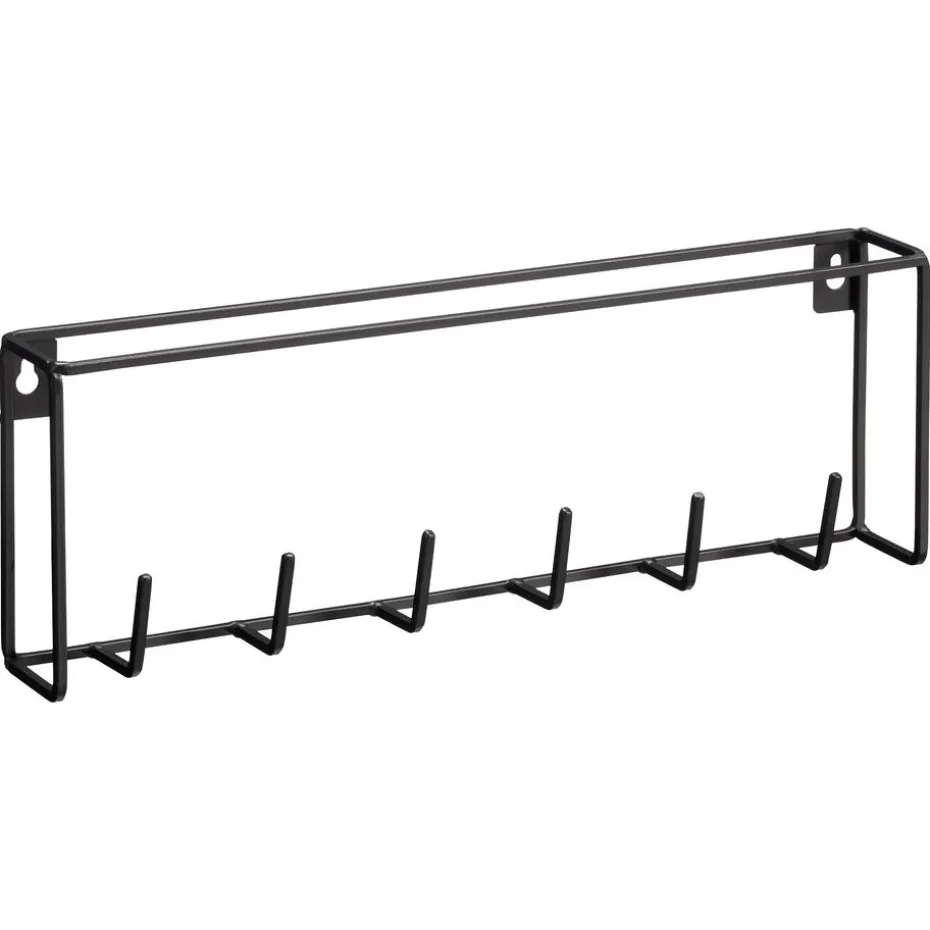 Strakke zwarte kapstok met 6 haakjes. 14x35x5 cm (lxbxh).