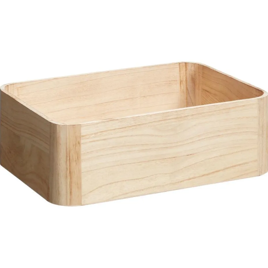 Naturelkleurige houten kist. 36,5×36,5×12 cm (lxbxh).