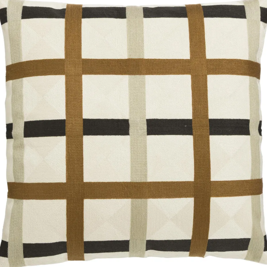 Sierkussen Ravello in verschillende kleurtinten van bruin en beige straalt een moderne sfeer uit. Het design van verticale en horizontale strepen op dit kussen creëert een speels effect. Het is een perfecte invulling voor op de bank, je zithoek of stoel, en je fauteuil. De afmeting van dit kussen is 45×45 cm en is samengesteld uit 100% polyester. Het vulgewicht van 450 gram biedt een goede ondersteuning. Mix en match met andere sierkussens en laat je inspireren door ons assortiment kussens in verschillende kleuren en maten.