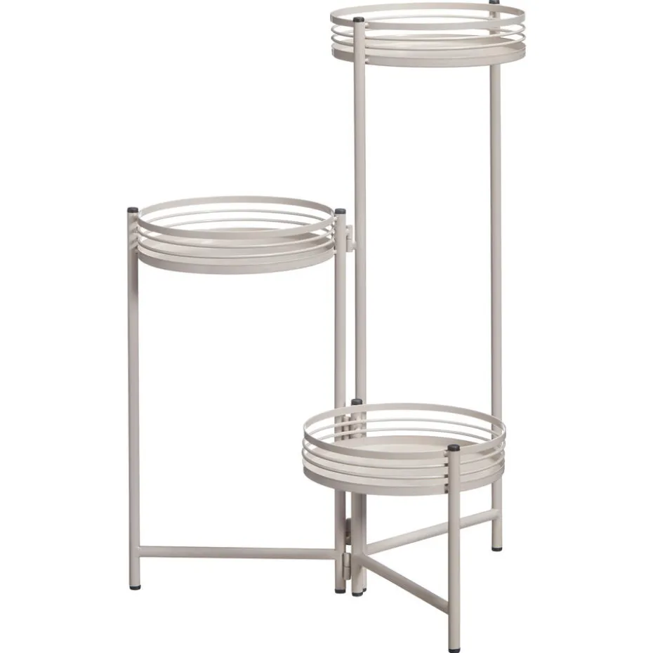Het Catania plantenrek is een prachtige toevoeging aan je interieur met zijn zandkleurige kleur en elegante ronde vormen. Met ruimte voor drie planten en/of bloempotten biedt dit rek een charmante en sfeervolle manier om groen in huis te brengen. Perfect voor binnen maar extra leuk onder je veranda of overkapping. Met afmetingen van 42×60 cm (diameter x hoogte) past dit metalen rek in elke ruimte.