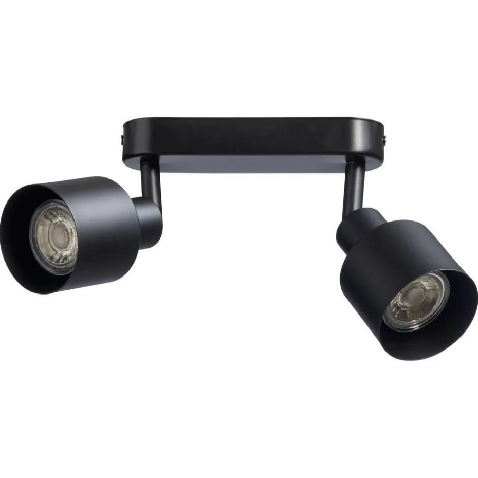 Spot van mat zwarte metaal. 2-Lichts. GU10 fitting. Max. 50 Watt.