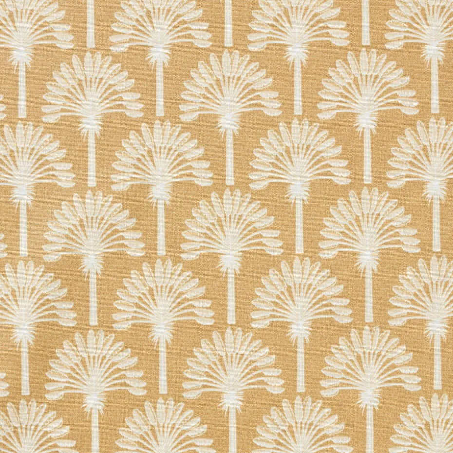 Tafelzeil okerkleurig met witte bloemen. Eenvoudig af te nemen met een vochtige doek. 140 cm breed.