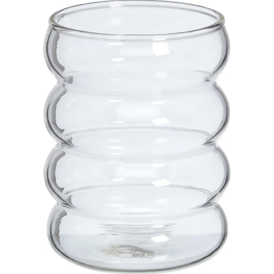 Het Wavy drinkglas heeft een transparante kleur met een prachtig bobbel-effect. Met een royale inhoud van 350 ml bied dit waterglas voldoende ruimte voor al jouw favoriete drankjes. Voeg een trendy sfeer toe aan jouw tafelsetting met dit tijdloze glas.